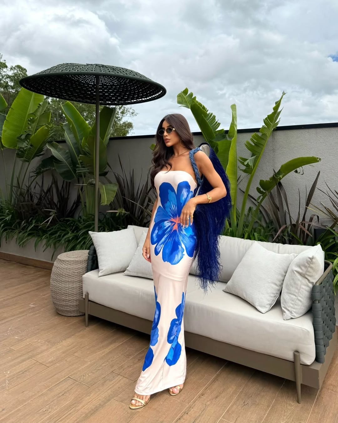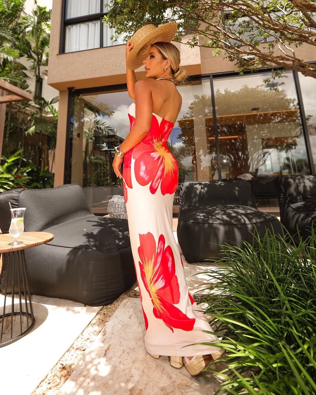 Product information: Fabric: Milk Silk Composition: 83% polyester, 17% spandex Waist Style: Mid-rise Sizes: S, M, L How to Wear: As a standalone piece Skirt Length: Floor-length Design: Strapless/Tube-style Fabric Name: Milk Silk Sleeve Style: Sleeveless Main Fabric Composition: Polyester